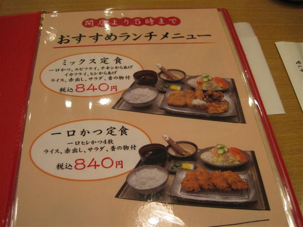 點的是 840 Yen 的豬排定食 , 還有其它的海鮮之類的..不過當時一心只想吃肉...