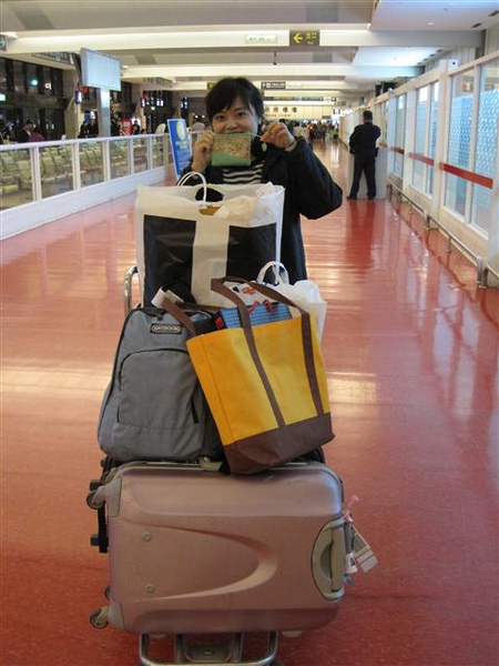 在第一航廈的Duty Free 又買了嬌蘭的眼霜 , 植村秀卸裝油..... etc , 又是提走一大袋