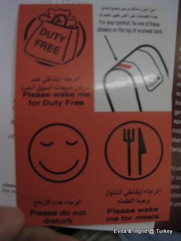 不管你想睡到死 ,想買免稅品或想要吃飛機餐~只要將你的需求貼在座位上 ,他們就知道該怎麼做囉