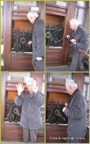 樓的終點有個老伯在等我們~~還很親切的示範手動打鐘給我們看唷 !