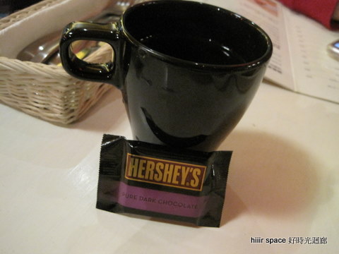 店家還幫忙送上溫開水及給他一片巧克力呢 !