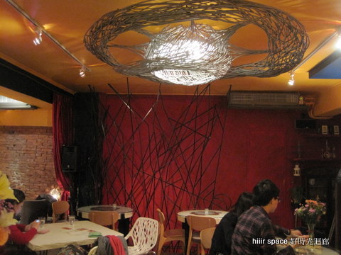 天花板的大燈飾尤其引人注意 , 後來才知道這是燈飾藝術家林邁大師親手用鐵絲做成的