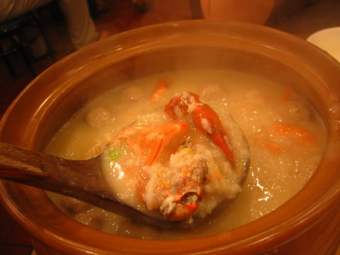 一湯匙撈下去, 料真的有夠多..除了螃蟹外 還有蝦子跟小貢丸 ( 放小貢丸是要把我們撐死嗎 )