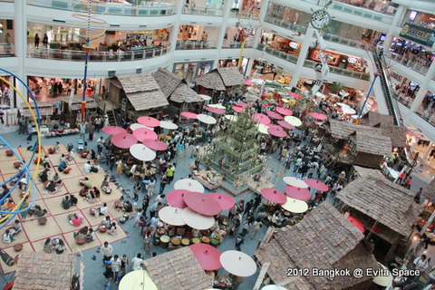 把整個泰國傳統市集搬到百貨公司裡了 , 很有特色 , 也很多人就坐在這個廣場吃飯喝茶